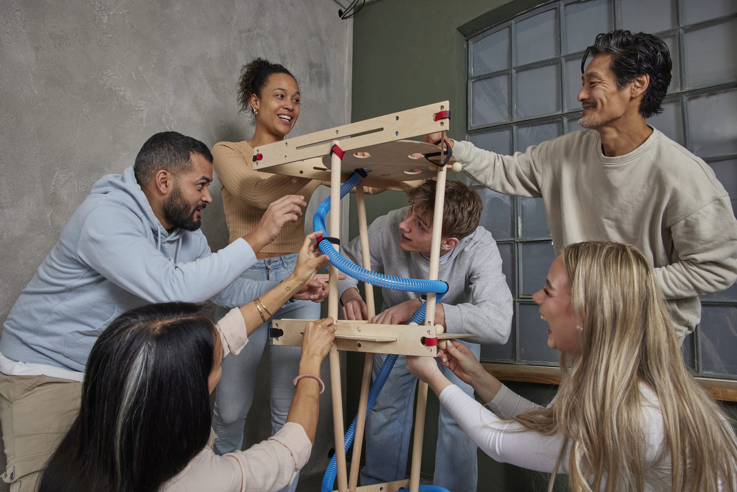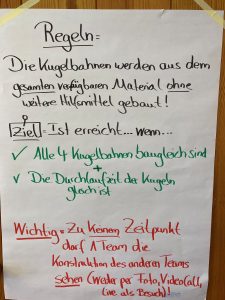 Sonja Lange: Ein paar Schwierigkeiten hatte ich ja erwartet, andere überhaupt nicht! So dachte ich zum Beispiel: „Wir sind ja eine IT-Firma, da sollte so ein Videocall per Handy doch ein Leichtes sein …“ Aber nein, das hat erst mal eine halbe Ewigkeit gedauert (lacht). Außerdem musste ich am Ende improvisieren und meiner Trainerinnen-Intuition folgen, als ich merkte, dass sich ein Team mit seinem Modell durchgesetzt hat und die anderen mehr Unterstützung brauchen, weil sie es sonst nicht schaffen. Das eine Team war also quasi fertig. Deswegen habe ich drei Personen aus diesem Team die Aufgabe gegeben, den anderen drei Teams zu helfen, ihre Kugelbahnen fertig zu bekommen – ohne Visualisierungshilfen, also nur durch verbales Erklären. Außerdem habe ich dann noch „Supervisor:innen“ herumgeschickt, die haben dann das Ganze gerockt. Nach 75 Minuten war alles fertig.