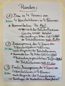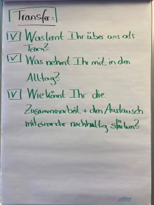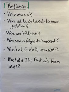 Sonja Lange: Zuerst habe ich die Perspektiven der einzelnen Teams sprechen lassen. Dann die Perspektiven der Botschafter:innen und dann das Feedback der beobachtenden Person. Auf dieser Grundlage haben wir dann als Team reflektiert, was wir aus den Erfahrungen lernen und mit in den Alltag nehmen können.